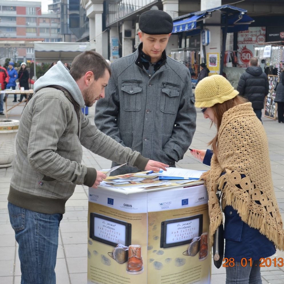 Konvencija o zaštiti lica u odnosu na automatsku obradu podataka usvojena je 28.01.1981.godne, u Savetu Evrope. Ovaj dan se obeležava kao Evropski dan zaštite podataka o ličnosti. Tim povodom, u ponedeljak, 28.01.2013. na platou ispred tržnog centra Kalča, predstavnici Odbora za ljudska prava Niš su zajedno sa volonterima sproveli akciju deljenja letaka na ulici.