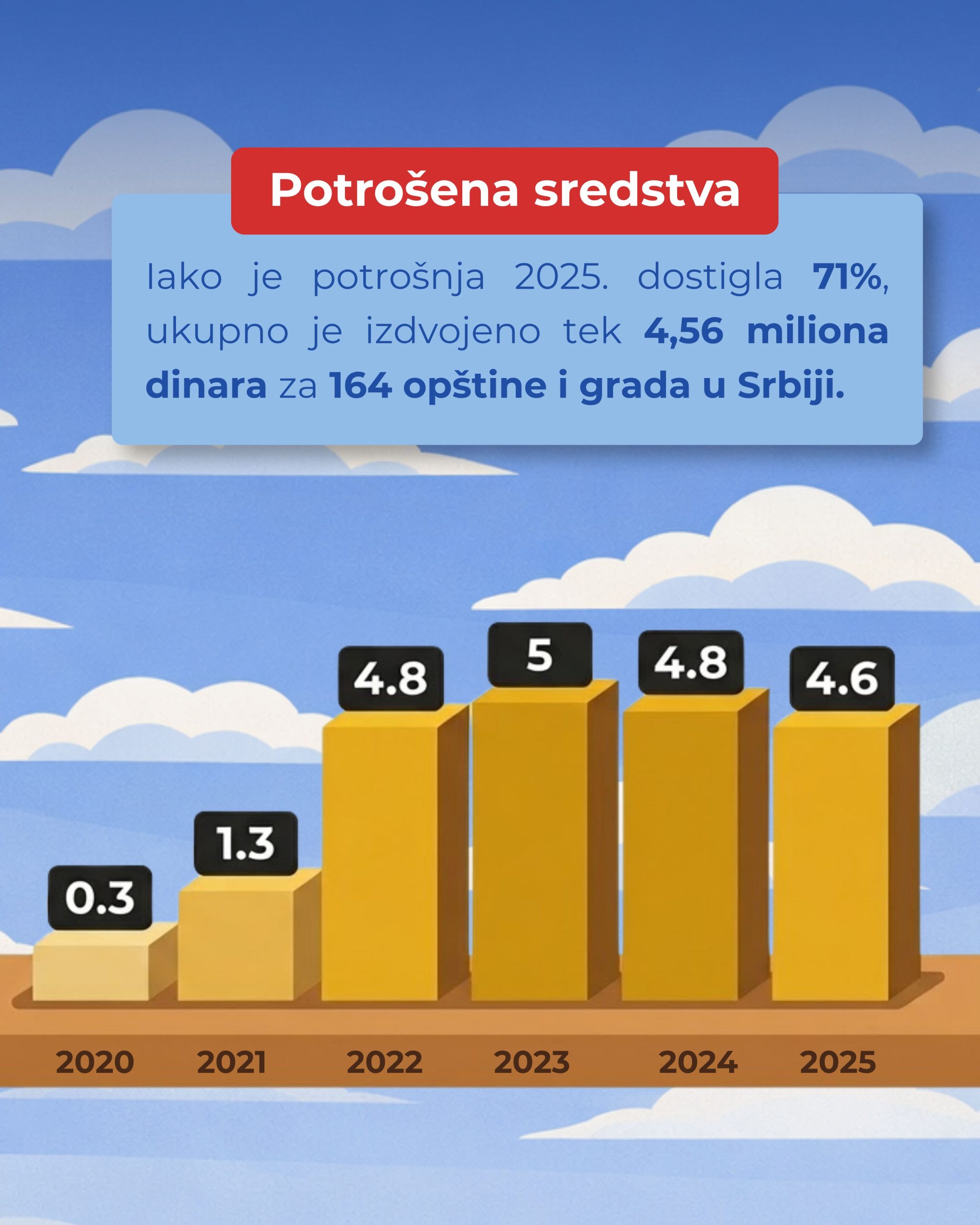 ➡️ U 2025. izdvojeno je svega 4,56 miliona dinara za 164 mesta