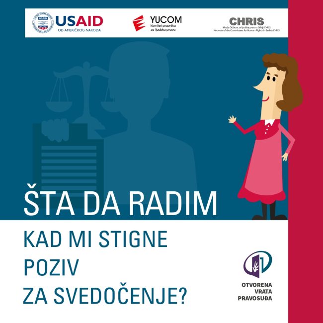 www.otvorenavratapravosudja.rs Vodič „Šta da radim kad mi stigne poziv za svedočenje?“ namenjen je građanima i građankama kako bi se upoznali s pravima i obavezama koja imaju u postupcima pred sudom ili organom uprave, u kojima učestvuju u svojstvu svedoka. Takođe, ima za cilj da objasni nedoumice koje građanke i građani imaju o svedočenju u parničnom,…